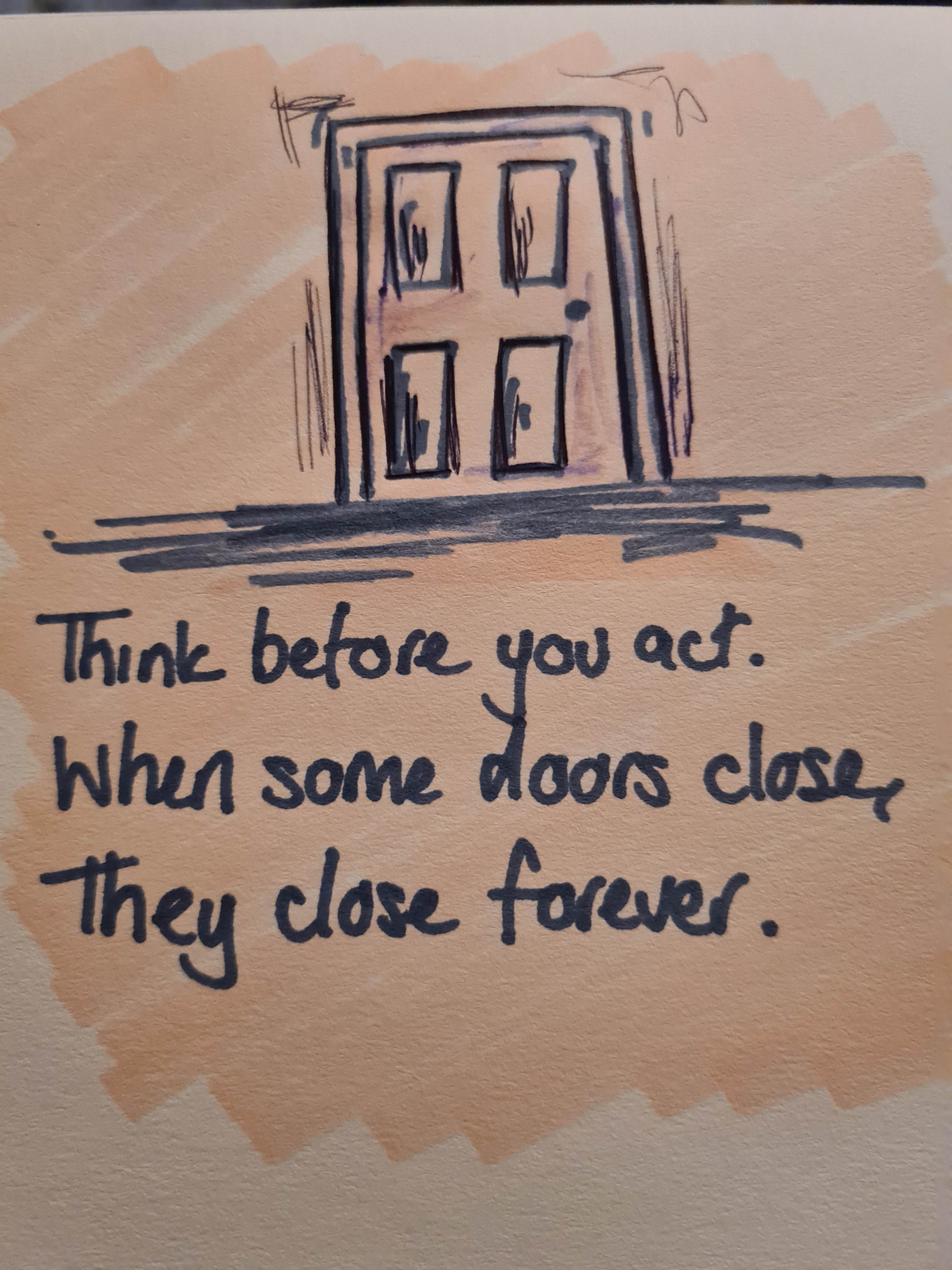 What does that look like? After the ugly crying, a lot of talking to myself. Starting with a small dose of chastisement. Followed by, I think the kids call it “re-parenting”. Afterwards, some drawing, colouring, re-watching TV shows. That, I find, is a great way to zone out for an hour plus. You know the plot. You don’t have to think. It’s comforting.